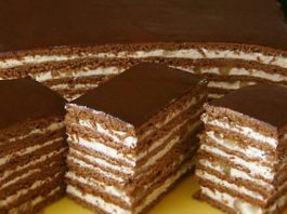 Шоколадный бисквитный торт без яиц с творожным кремом